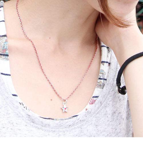 付属のチェーンはそれぞれの天然石のカラーに合わせた色味で特殊コート。